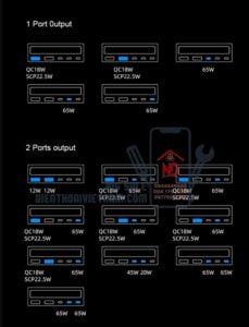 - Type-C1: (Max 65W) 5V/3A; 9V/3A; 12V/3A; 15V/3A; 20V/3.25A