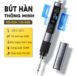 Bút hàn FNIRSI HS-02A / HS-02B là mỏ hàn thông minh công suất lớn 100W, thiết kế nhỏ gọn, hiện đại, chuyên dùng cho sửa chữa điện tử, bo mạch, linh kiện SMD, IC, chip và các công việc hàn kỹ thuật yêu cầu độ chính xác cao. Với khả năng làm nóng cực nhanh, kiểm soát nhiệt chính xác và cấp nguồn qua Type-C PD, đây là lựa chọn lý tưởng cho thợ sửa chữa chuyên nghiệp, kỹ thuật viên và người làm DIY.