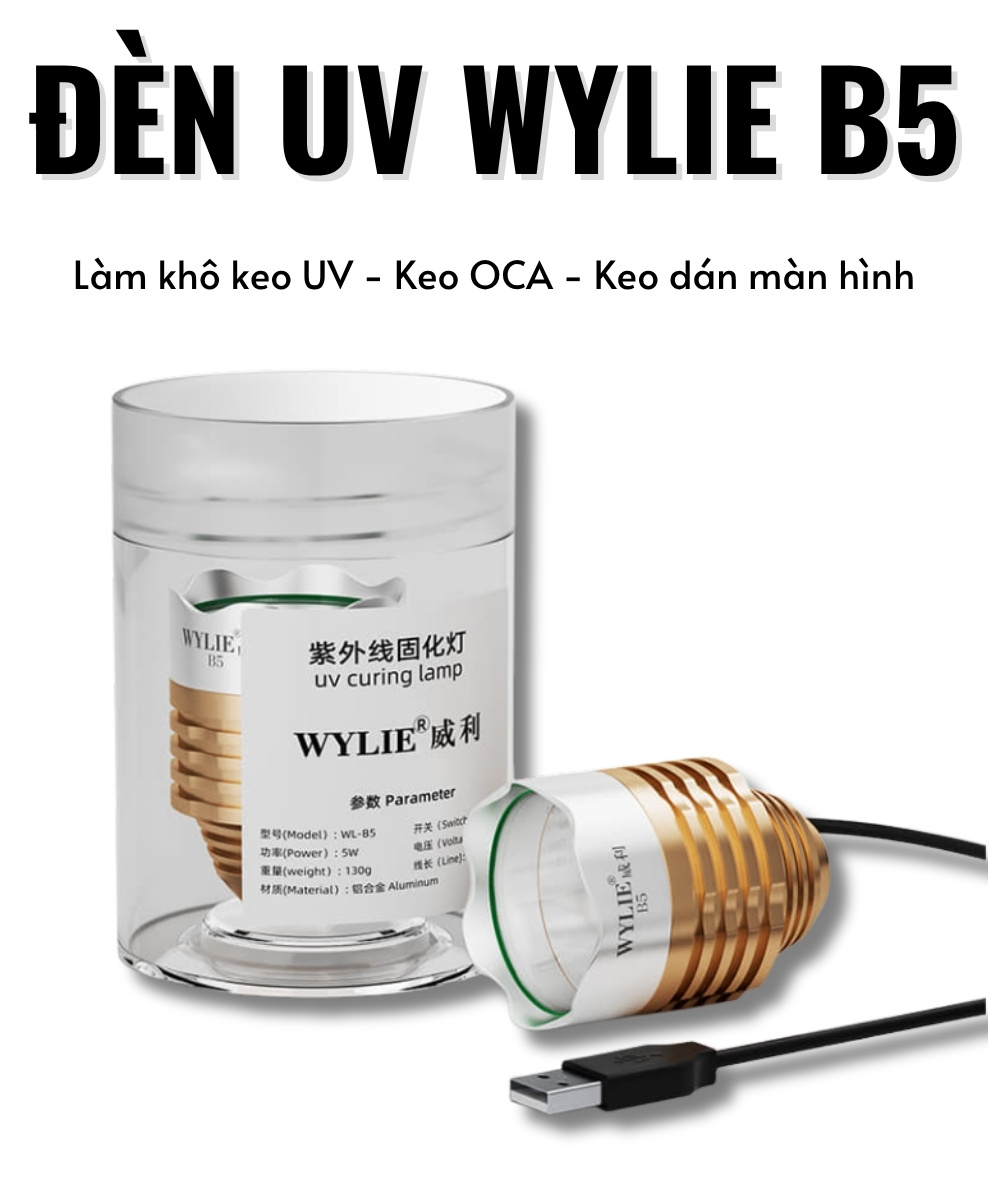 Đèn UV Wylie B5 chuyên dùng làm khô keo UV, keo OCA, keo viền màn hình điện thoại nhanh và đều.