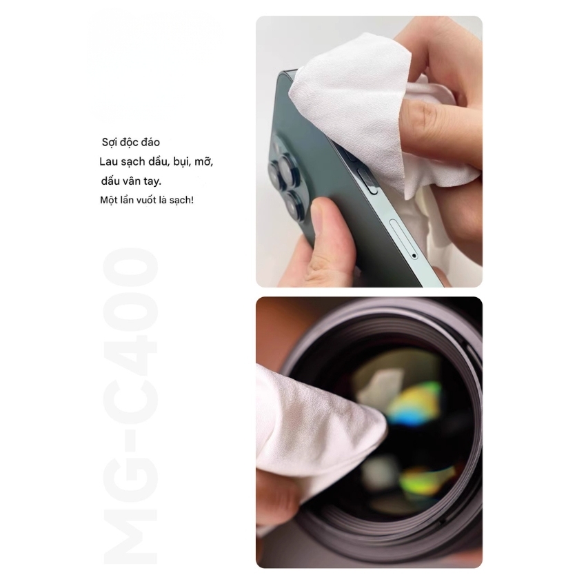 Làm sạch vết bẩn cứng đầu: Không chỉ là nước, các sợi vải độc đáo (Unique fibers) còn dễ dàng đánh bay các vết bẩn khó chịu như dầu mỡ, bụi bẩn và đặc biệt là dấu vân tay in trên màn hình hoặc ống kính. Chỉ với một đường lau nhẹ, bề mặt sẽ trở nên sáng bóng.