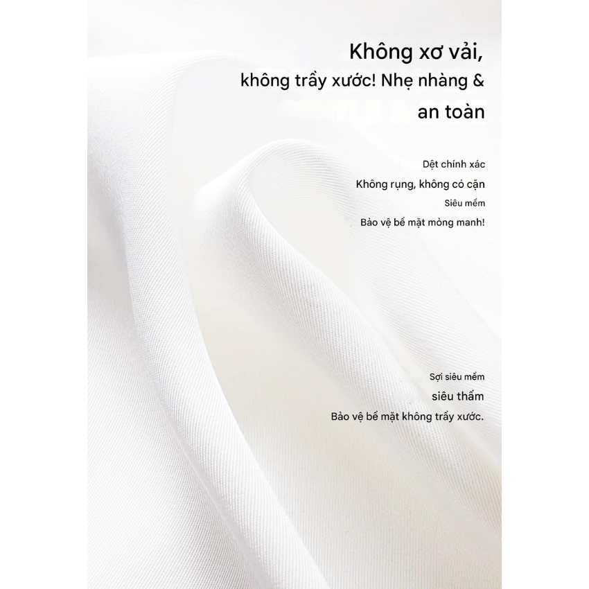 Sợi siêu mềm: Bề mặt khăn cực kỳ êm ái, nâng niu các bề mặt tinh xảo nhất, đảm bảo an toàn tuyệt đối và chống trầy xước trong quá trình thao tác.