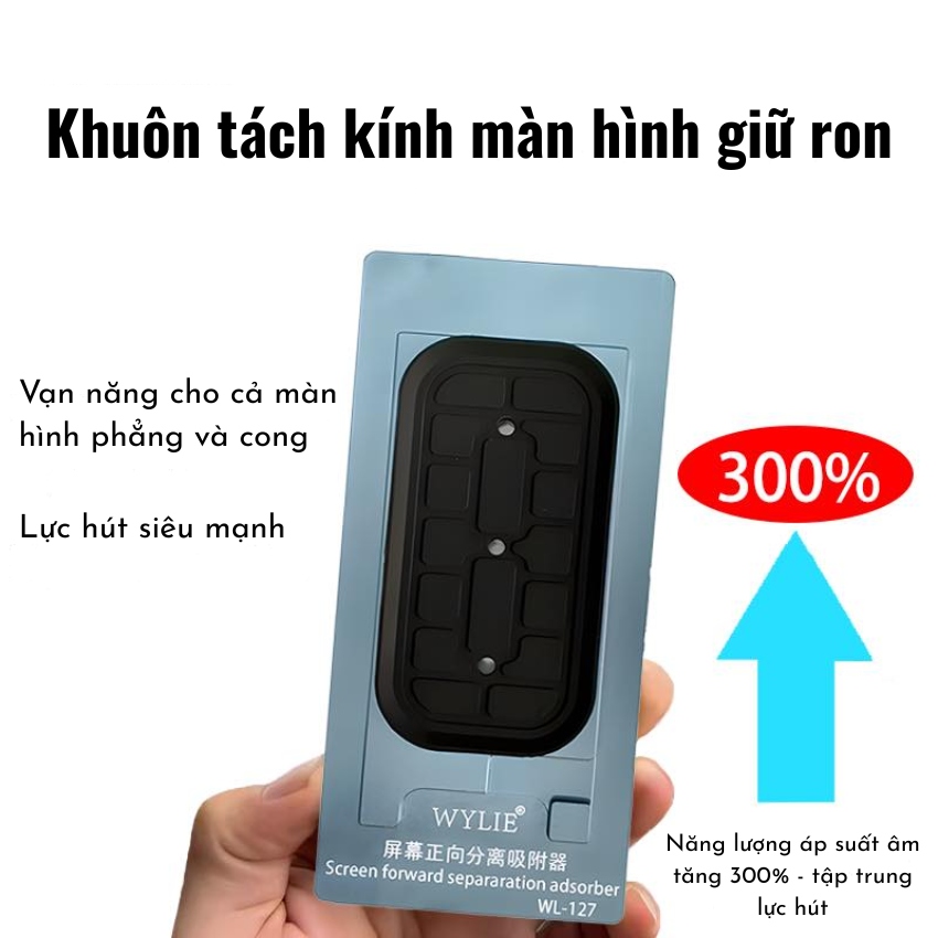 Điểm nổi bật nhất của Khuôn tách kính màn hình giữ ron Wylie WL-127 chính là khả năng hấp thụ cực mạnh. Với thiết kế đệm silicone mật độ cao độc quyền, sản phẩm tạo ra năng lượng áp suất âm hội tụ lên đến 300%.
