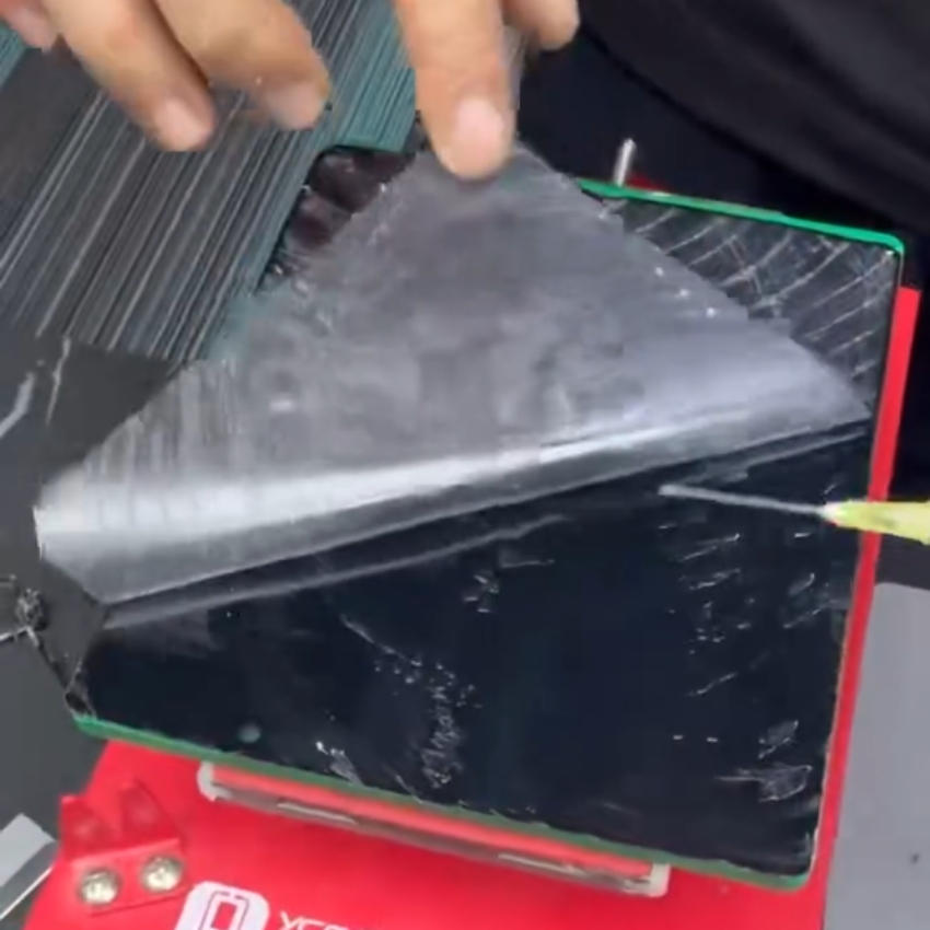 Vệ sinh keo: Sau khi tách, sử dụng dung dịch chuyên dụng và khăn sạch để loại bỏ keo thừa ngay trên Samsung Fold Screen OCA Remove Base để đảm bảo màn hình luôn được phẳng và an toàn.