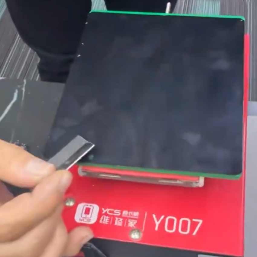 Gia nhiệt: Đặt toàn bộ khuôn lên bàn nhiệt (như dòng YCS trong ảnh) để làm mềm lớp keo OCA.