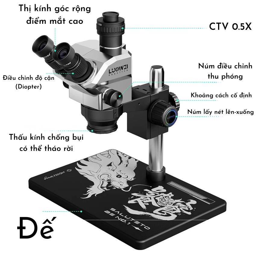 Kính hiển vi Luowei LW-TR03-B3TV 3 mắt, phóng đại 68X