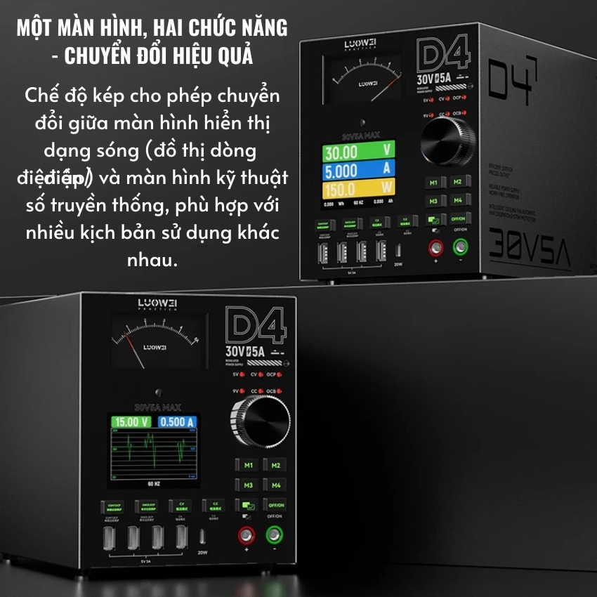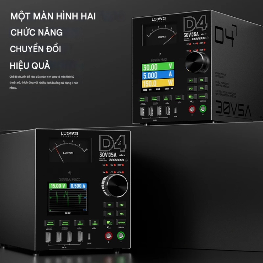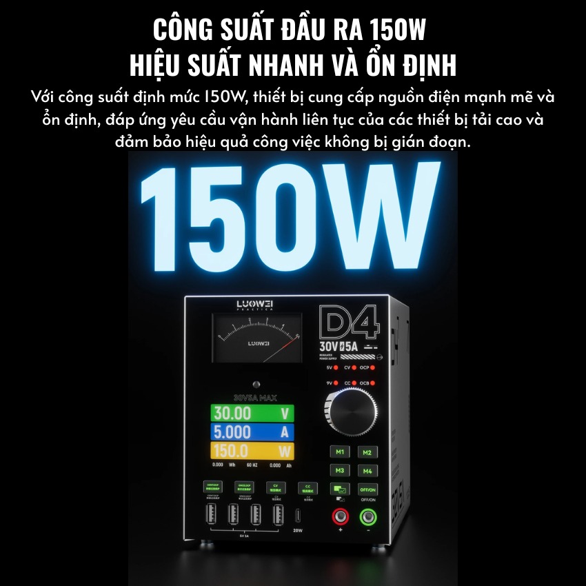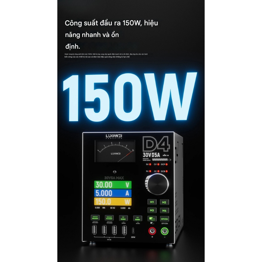 Không chỉ đẹp, Luowei D4 còn là một “quái vật” về hiệu năng. Đây là chiếc Đồng hồ nguồn 30V 5A sở hữu công suất thực lên đến 150W.