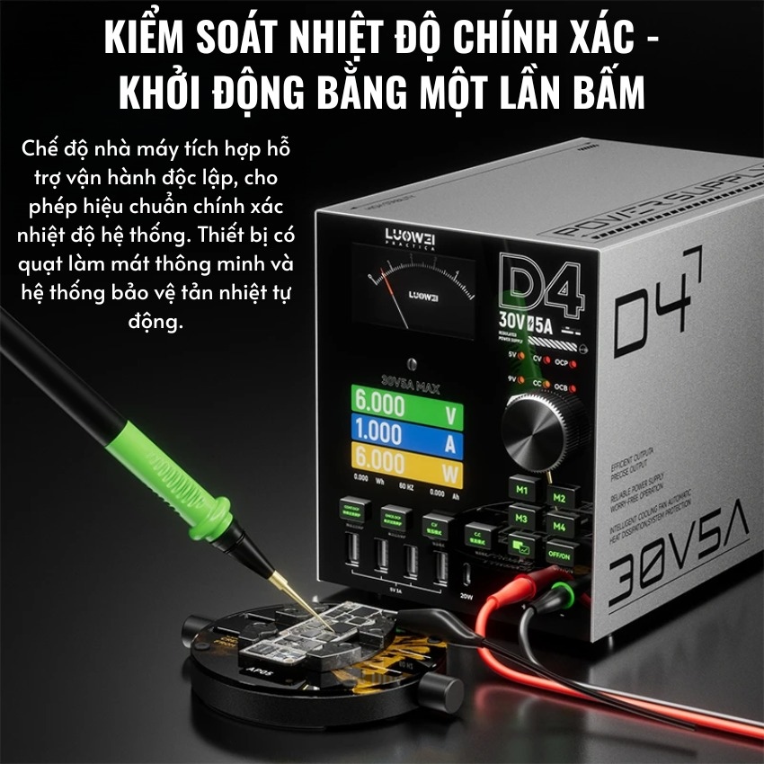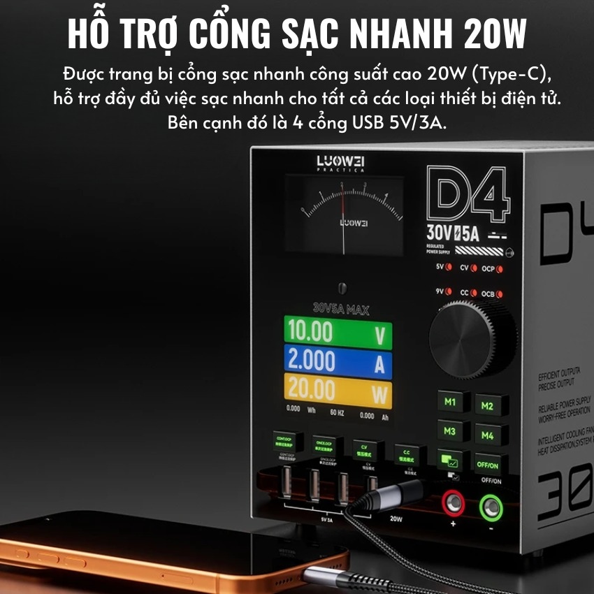 Trong lĩnh vực sửa chữa điện tử, đặc biệt là sửa chữa điện thoại và máy tính xách tay, việc sở hữu một bộ nguồn ổn định và đa năng là yếu tố tiên quyết. Máy cấp nguồn Luowei D4 ra đời như một giải pháp toàn diện, kết hợp giữa vẻ đẹp công nghệ hiện đại và sức mạnh hiệu năng vượt trội, đáp ứng khắt khe nhu cầu của các kỹ thuật viên chuyên nghiệp.