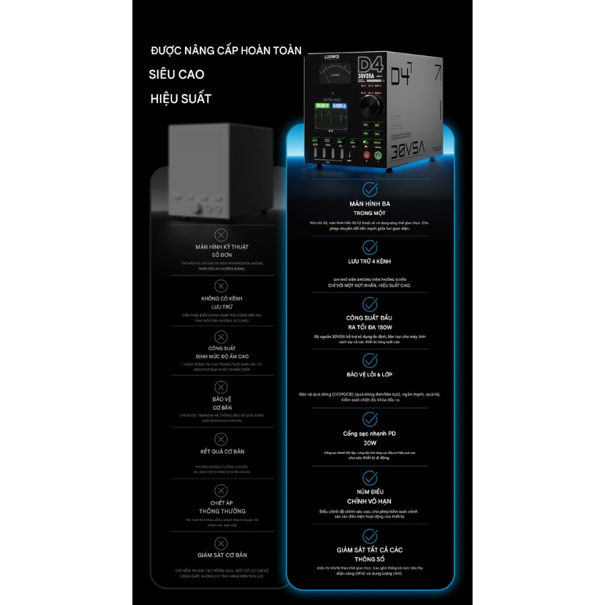 Tính năng thông minh Máy cấp nguồn Luowei D4