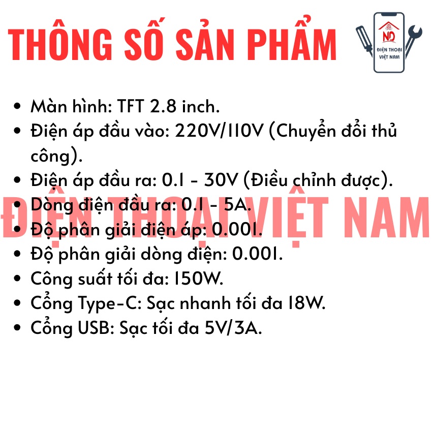 Với thông số này, thiết bị hỗ trợ hoạt động ổn định và liên tục cho cả việc sửa chữa điện thoại di động lẫn các dòng laptop yêu cầu công suất lớn. Khả năng chịu tải cao giúp máy hoạt động bền bỉ, tránh tình trạng sụt áp hay quá nhiệt khi chạy ở cường độ cao trong thời gian dài.