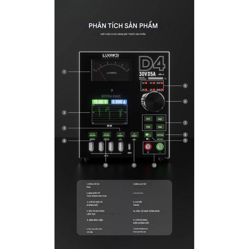 Với sự nâng cấp toàn diện từ màn hình hiển thị, công suất 150W cho đến các tính năng sạc nhanh PD và lưu trữ kênh nhớ, Luowei D4 xứng đáng là trợ thủ đắc lực trên bàn làm việc của mọi kỹ thuật viên.