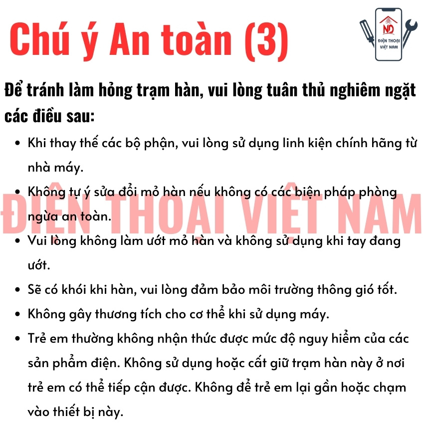 Khi thay lõi nhiệt hoặc mũi hàn, hãy rút mỏ và chờ máy vào chế độ an toàn, sau đó thay lõi.