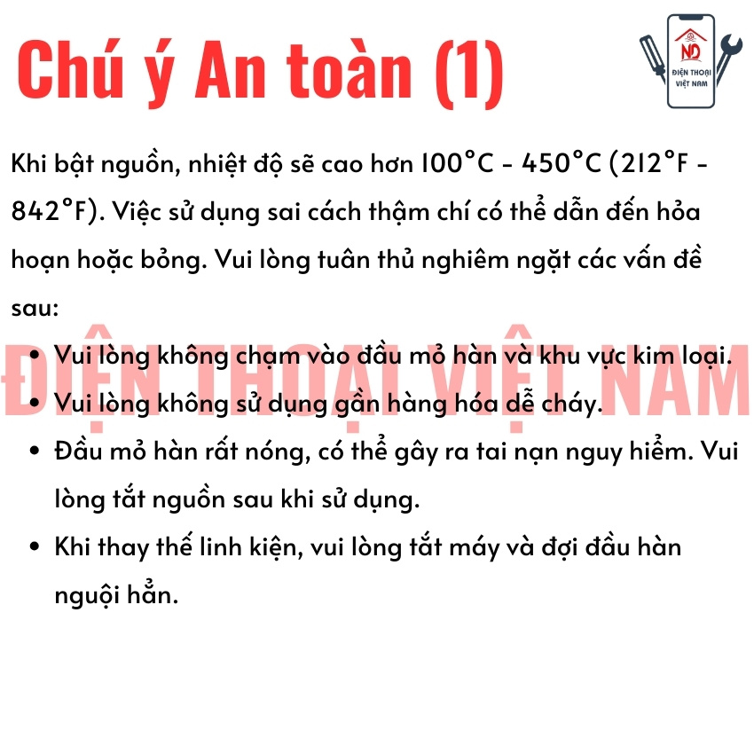 Khi bắt đầu, nên chọn nhiệt độ thấp (ví dụ ~300°C) và điều chỉnh dần tùy công việc để tránh làm hỏng linh kiện.