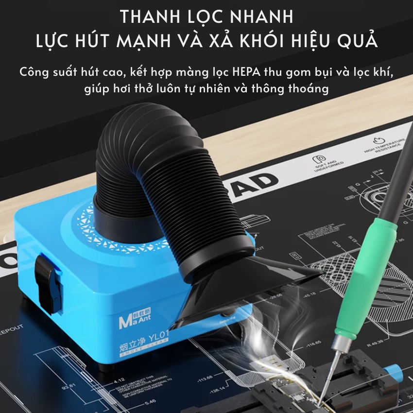 Trong các công việc như hàn mạch điện tử, sửa chữa điện thoại hay xử lý keo laser, khói độc hại sinh ra không chỉ gây mùi khó chịu mà còn ảnh hưởng trực tiếp đến sức khỏe đường hô hấp. Máy hút khói MaAnt YL01 (hay còn gọi là smoke clear smoking device) được thiết kế để giải quyết triệt để vấn đề này, mang lại không gian làm việc trong lành và an toàn.