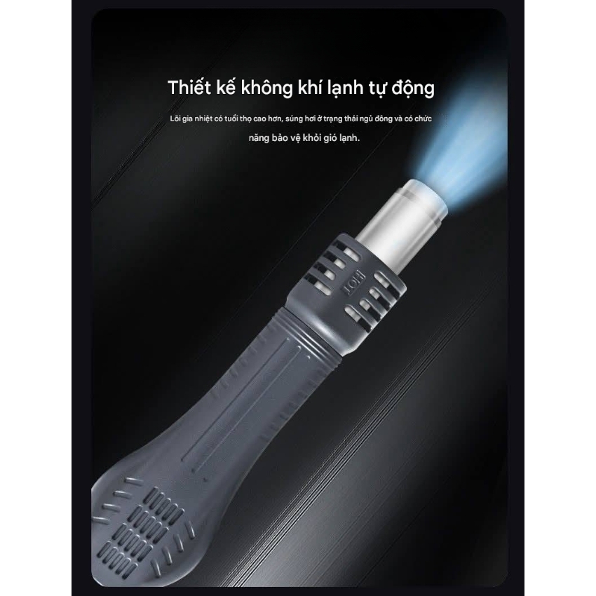 Một tính năng rất hữu ích giúp kéo dài tuổi thọ của tay khò là “Automatic Cold Air Design”. Khi ngưng sử dụng, máy sẽ thổi gió mát để làm nguội lõi nhiệt nhanh chóng trước khi tắt hẳn. Ngăn ngừa tình trạng quá nhiệt gây hỏng may-so.