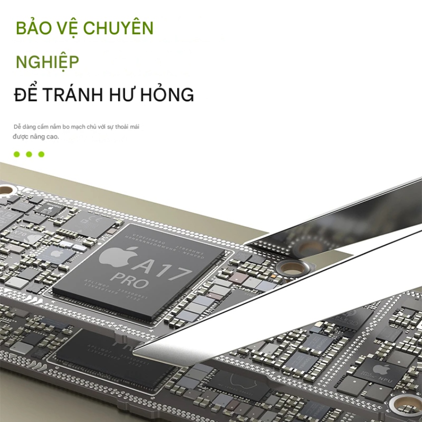 Trong sửa chữa phần cứng điện thoại hiện đại, đặc biệt là các dòng iPhone đời cao sử dụng mainboard xếp tầng, việc tách và thao tác trên bo mạch đòi hỏi độ chính xác cực cao. Các loại nhíp thẳng truyền thống thường gây khó khăn khi thao tác trong không gian hẹp hoặc dễ làm trầy xước linh kiện xung quanh.
