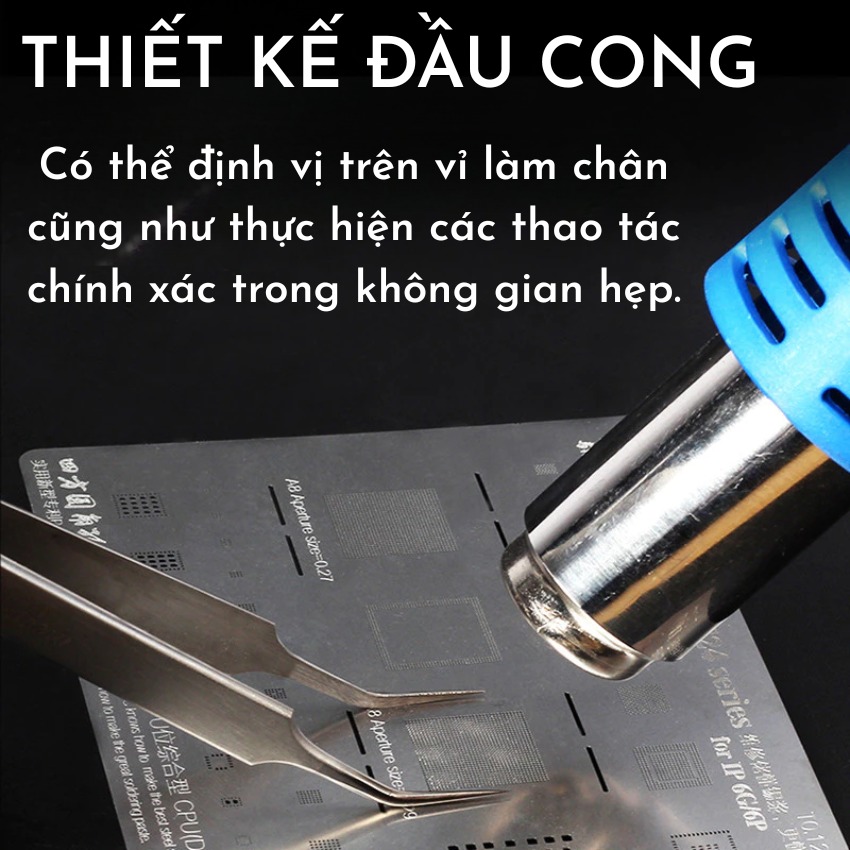 Model Aaa-15: Thiết kế dạng mũi cong (Elbow Design), hỗ trợ đắc lực khi thao tác trong các không gian hẹp, góc khuất hoặc dùng để định vị vỉ đổ chân IC (tin-planting steel mesh).
