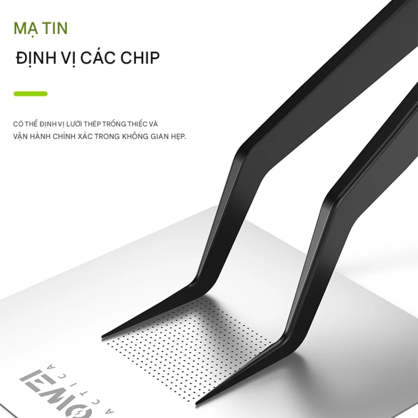 Bên cạnh đó, thiết kế cơ học của nhíp giúp tạo ra lực kẹp chặt. Khi kẹp dây câu mạch hoặc linh kiện, lực giữ chắc chắn giúp vật thể không bị rơi rớt, đảm bảo quy trình làm chân IC diễn ra suôn sẻ và định vị lưới thép chính xác.