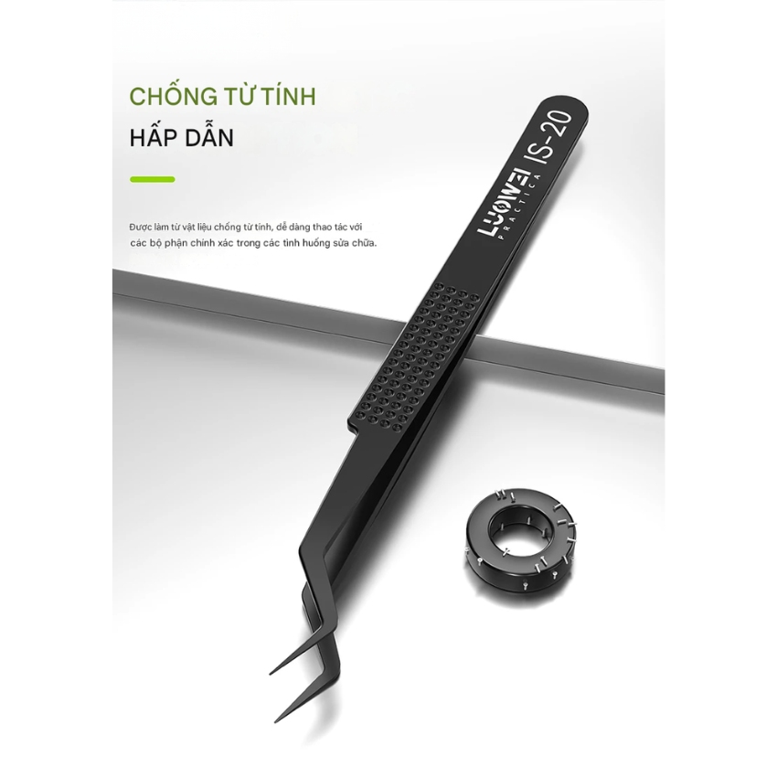 Đối với việc sửa chữa các thiết bị điện tử nhạy cảm như đồng hồ cơ hay vi mạch máy tính, từ tính là “kẻ thù” nguy hiểm. Luowei IS-20 được làm từ vật liệu chống từ tính, giúp bạn dễ dàng thao tác mà không lo linh kiện bị hút dính vào nhíp ngoài ý muốn.