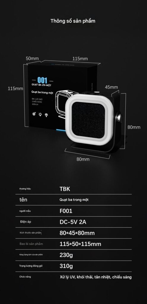 | Sản phẩm: | Quạt + Đèn UV mini TBK F001 |