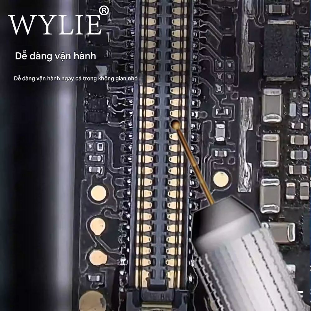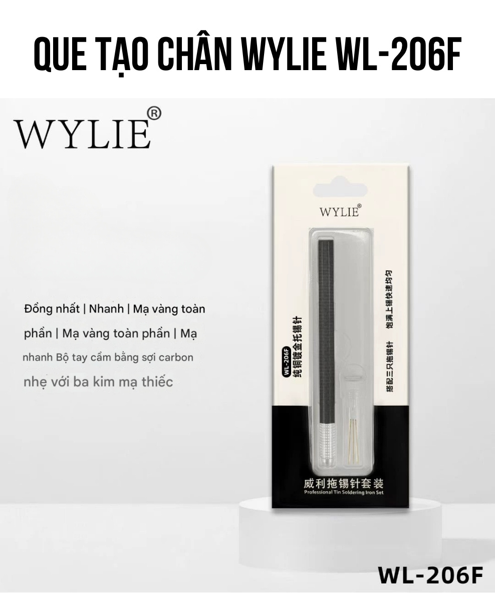 Que tạo chân Wylie WL-206F là sản phẩm chuyên dụng dành cho kỹ thuật viên sửa chữa điện thoại và bo mạch điện tử. Với thiết kế đầu bi tròn bằng hợp kim đồng mạ vàng, sản phẩm giúp thao tác hàn trở nên nhanh chóng, đều đặn và an toàn hơn. Đây là công cụ lý tưởng để tạo chân IC, xử lý các mối hàn nhỏ, hoặc làm việc trong không gian hẹp.