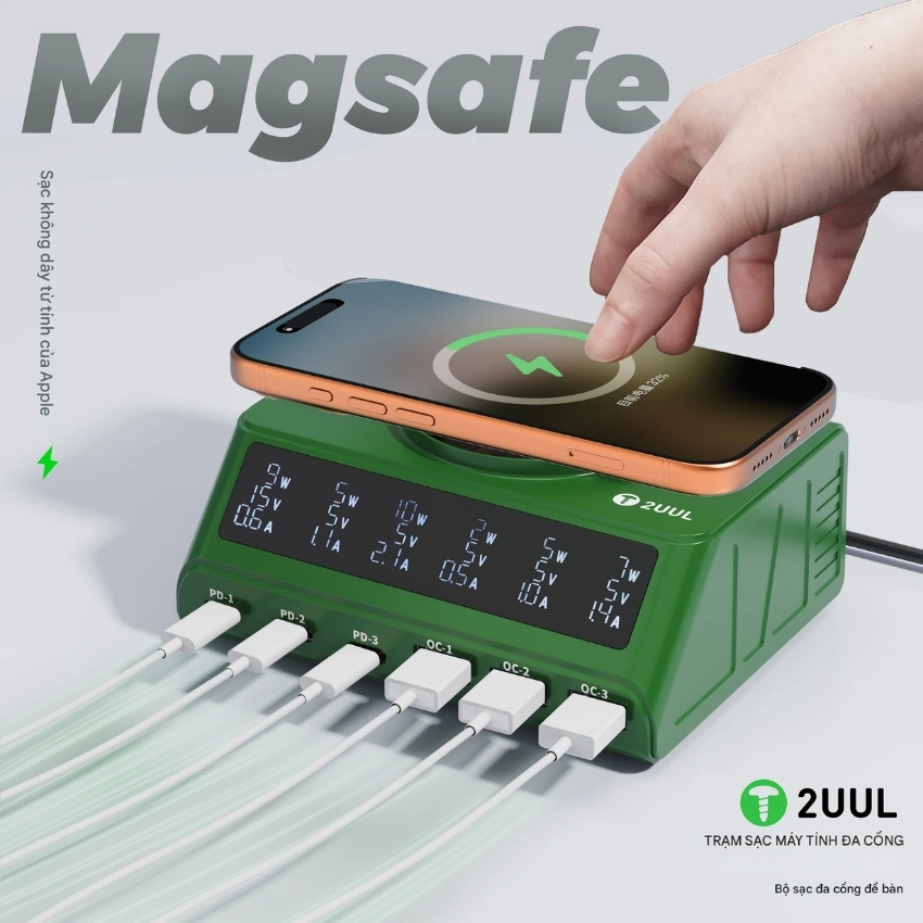 Sạc 6 cổng 2UUL PC11 Tích hợp sạc không dây MagSafe tiện lợi