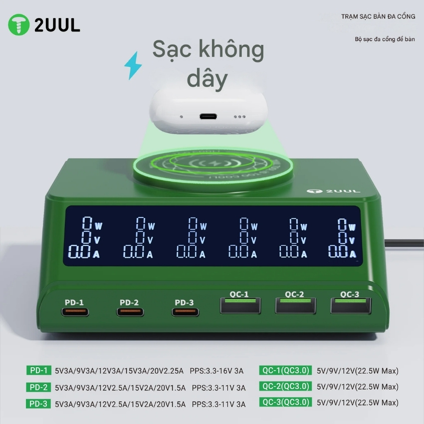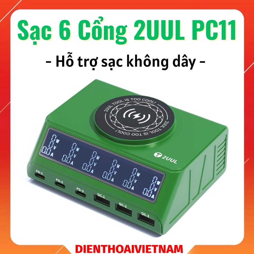 Sạc 6 cổng 2UUL PC11 đa năng, hỗ trợ sạc không dây rất tốt