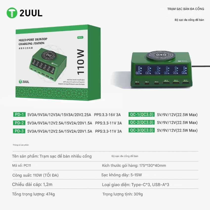 Trong kỷ nguyên bùng nổ của các thiết bị di động, việc sở hữu một bộ sạc để bàn có khả năng cấp nguồn đồng thời cho nhiều thiết bị là nhu cầu thiết yếu. Nắm bắt xu hướng đó, hãng 2UUL – thương hiệu quen thuộc trong giới kỹ thuật sửa chữa – đã tung ra thị trường sản phẩm Sạc 6 cổng 2UUL PC11. Với tổng công suất lên tới 110W cùng thiết kế hiển thị thông số trực quan, đây hứa hẹn là giải pháp năng lượng toàn diện cho mọi bàn làm việc.