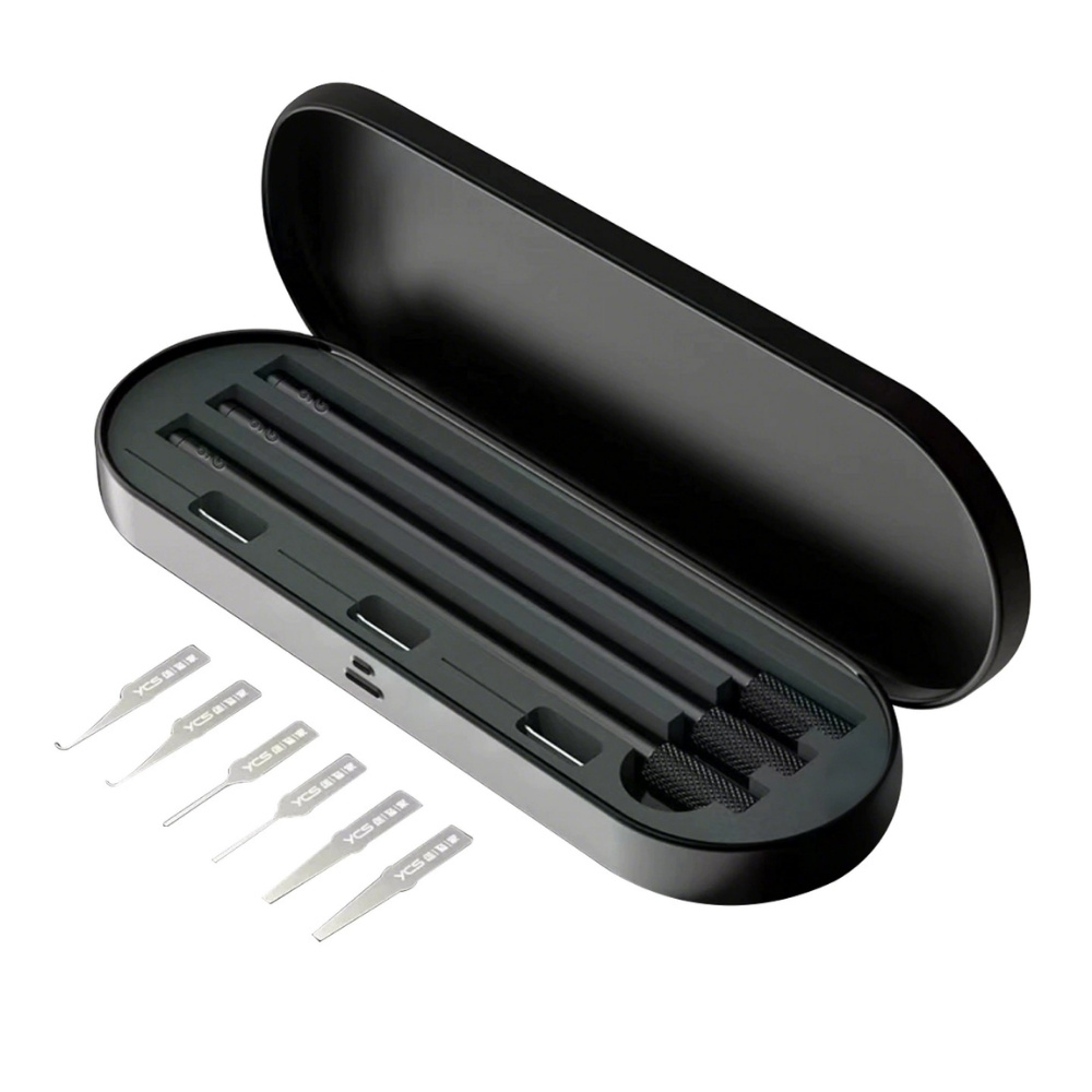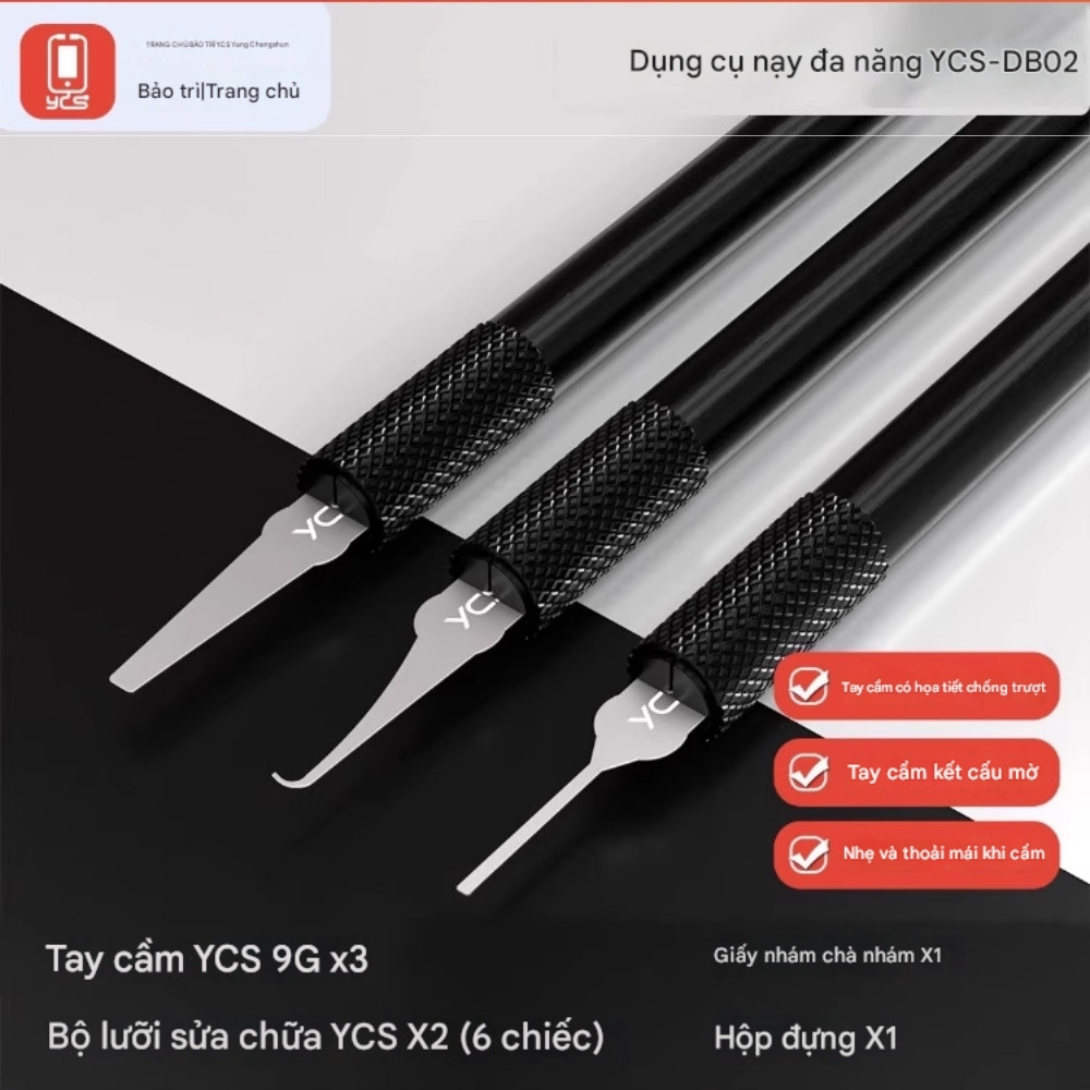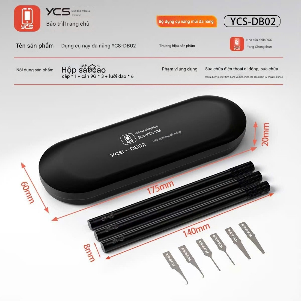 Bộ dao đục móc CPU YCS-DB02 là bộ công cụ cao cấp được thiết kế chuyên dụng cho việc tách CPU, IC, pin hoặc linh kiện dán keo trên mainboard điện thoại. Với thiết kế tinh tế, tay cầm chống trượt và lưỡi dao siêu mảnh, bộ dao giúp kỹ thuật viên thực hiện công việc tỉ mỉ một cách dễ dàng, nhanh gọn và chính xác.