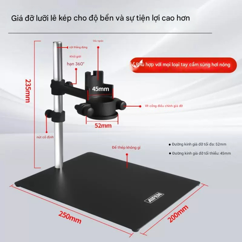 Chân đế + Giá đỡ tay khò Aifen giá tốt, kẹp chắc, dễ chỉnh.