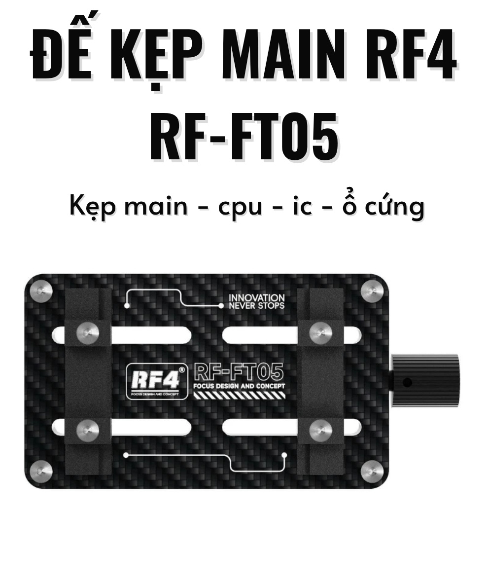 Thiết kế chuẩn xác: Đế kẹp main RF4 RF-FT05 có khả năng điều chỉnh linh hoạt, phù hợp với nhiều loại main khác nhau, giúp cố định chắc chắn trong quá trình sửa chữa.