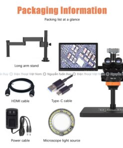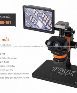 Kính hiển vi TBK‑701 là thiết bị trinocular stereo, tích hợp camera kỹ thuật số. HD và màn hình LCD, được sử dụng rộng rãi trong lĩnh vực sửa chữa thiết bị điện tử (như điện thoại, BGA), kiểm tra bản mạch, hàn linh kiện siêu nhỏ…