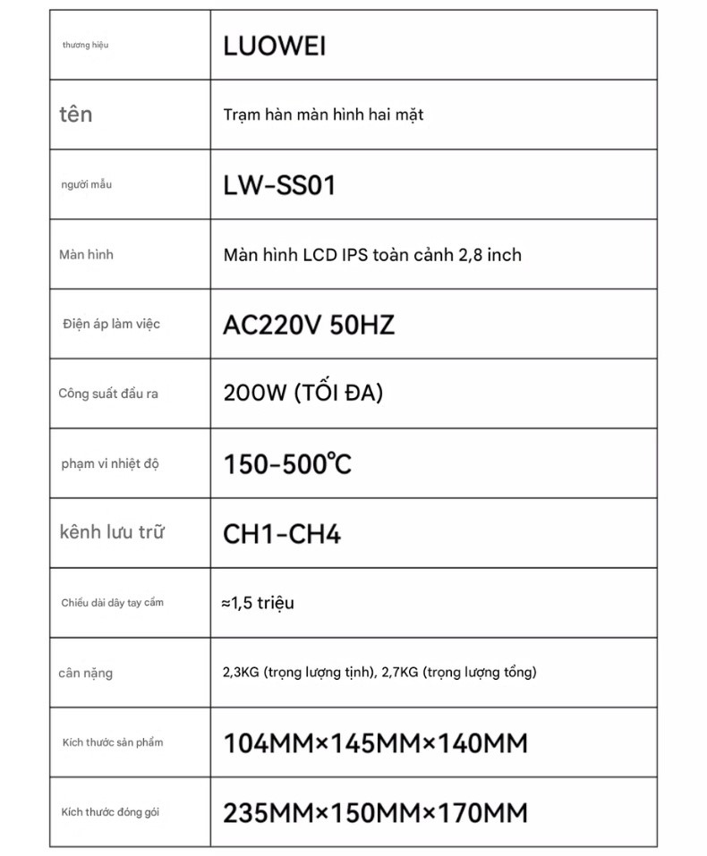 | Tên sản phẩm | Máy hàn LOUWEI SS-01 |