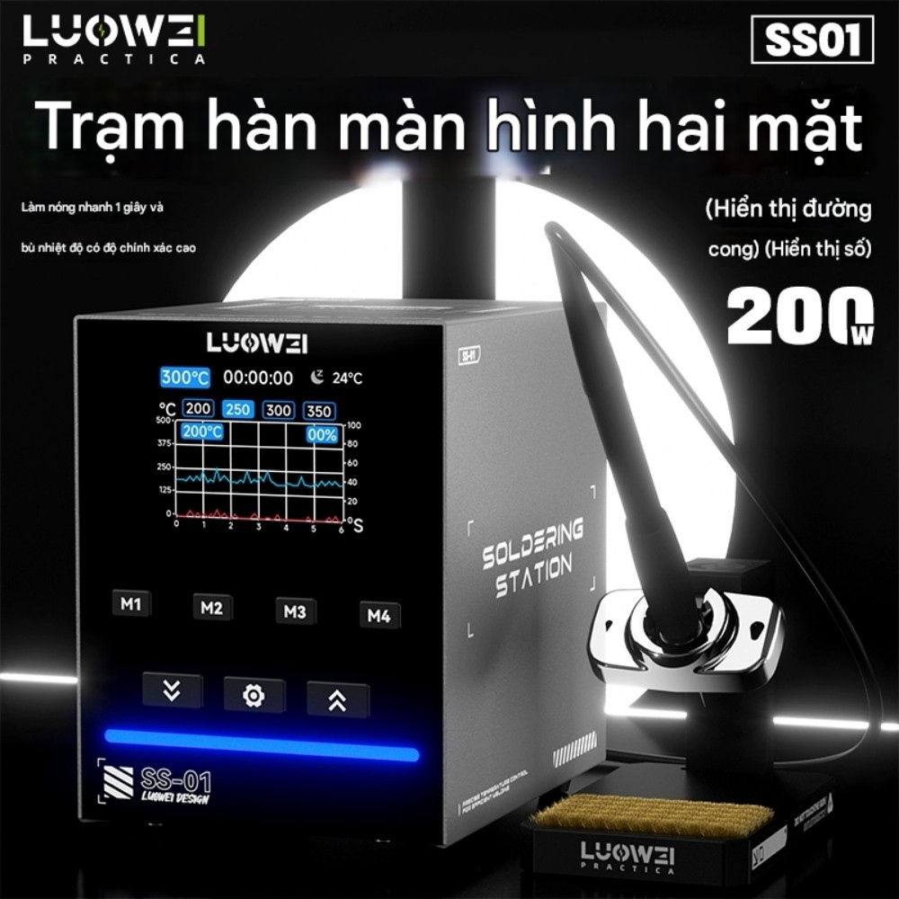 Máy hàn LOUWEI SS-01 là trạm hàn chuyên nghiệp với công suất lớn lên tới 200W – đáp ứng tốt công việc hàn linh kiện điện tử, sửa chữa bo mạch hoặc công việc kỹ thuật đòi hỏi độ chính xác cao. Thiết kế hiện đại, độ ổn định cao giúp bạn vận hành dễ dàng và hiệu quả.