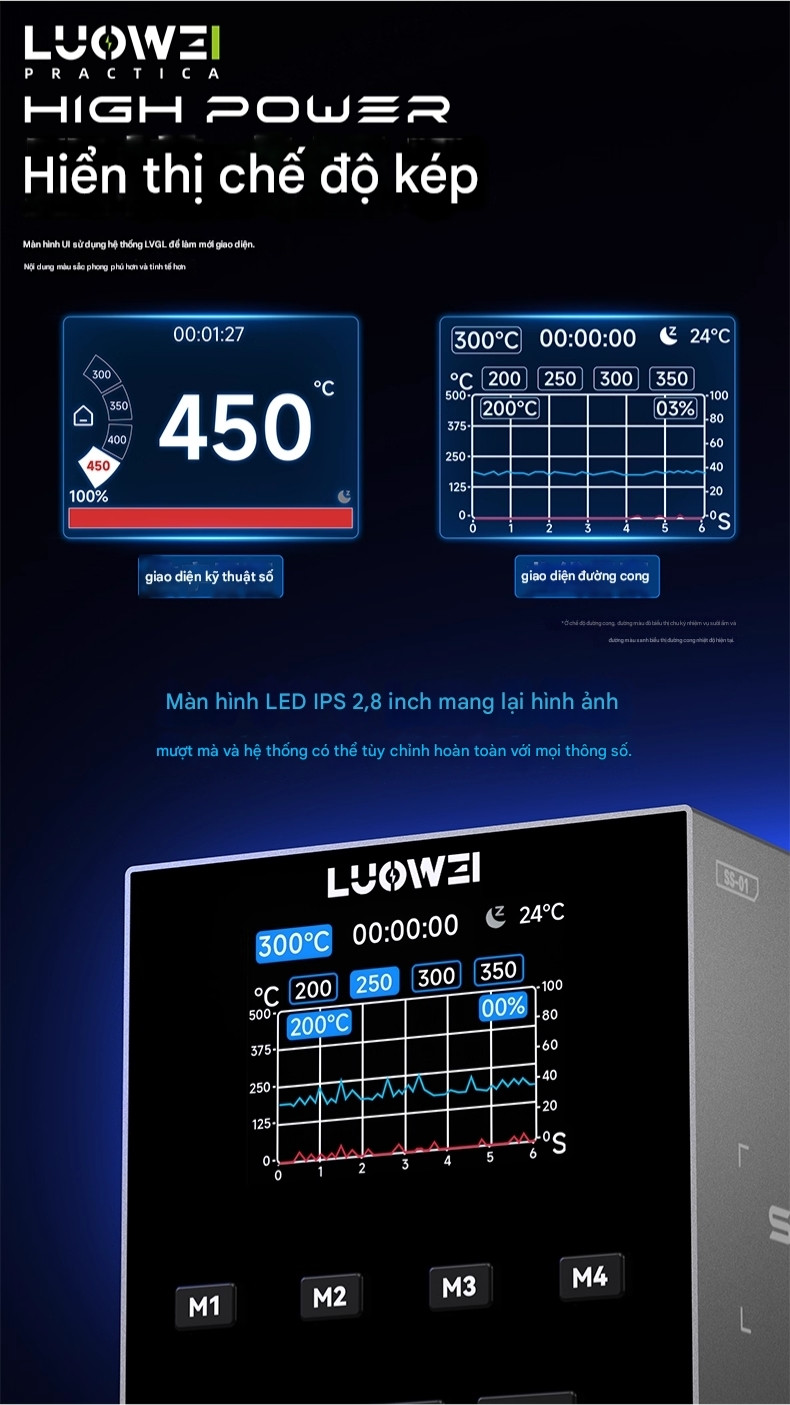 Với công suất lớn và chức năng điều khiển chính xác, Máy hàn LOUWEI SS-01 là lựa chọn lý tưởng cho các xưởng sửa chữa điện thoại, laptop, thiết bị 3C, bo mạch.