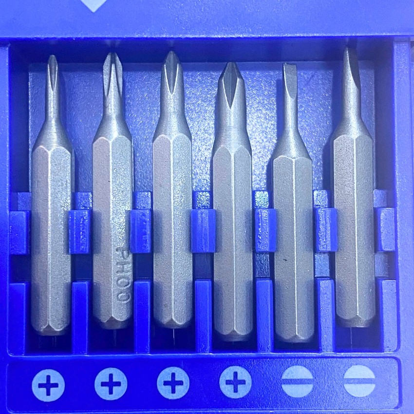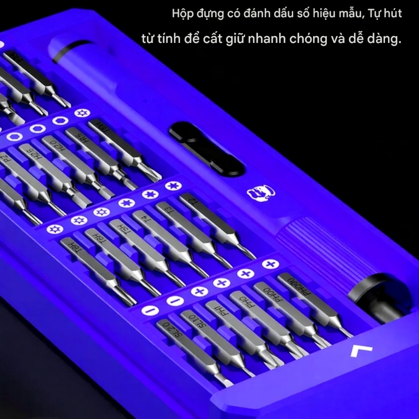 Lưu trữ từ tính: Các đầu vít được giữ chặt trong khay nhờ nam châm, giúp bạn không bao giờ lo lắng về việc rơi rớt hay thất lạc các chi tiết nhỏ.