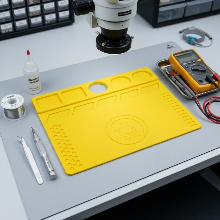 Việc sử dụng Microscope Silicone Pad không chỉ đơn thuần là bảo vệ bàn làm việc. Nó còn là một lớp bảo vệ chống tĩnh điện quan trọng, ngăn ngừa các sự cố phóng điện có thể làm hỏng các bảng mạch điều khiển tinh vi. Ngoài ra, tính năng chống bám dầu và chống nước giúp việc vệ sinh sau khi sửa chữa trở nên cực kỳ đơn giản.