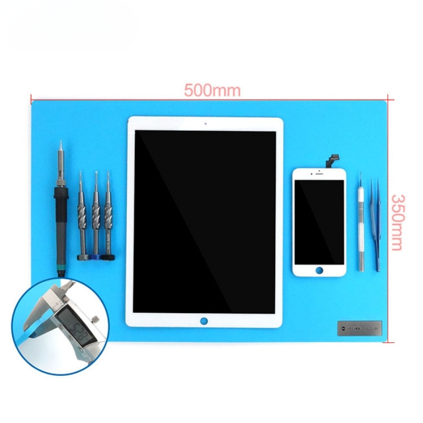 Với kích thước bề mặt 500mm x 350mm, sản phẩm cung cấp một không gian thao tác rộng rãi. Bạn có thể thoải mái đặt cùng lúc máy tính bảng, điện thoại và các dụng cụ bổ trợ như tua vít, nhíp gắp mà không cảm thấy chật chội. Việc tổ chức khu vực sửa chữa ngăn nắp giúp nâng cao hiệu suất công việc đáng kể.