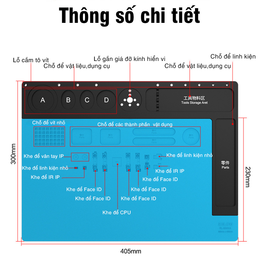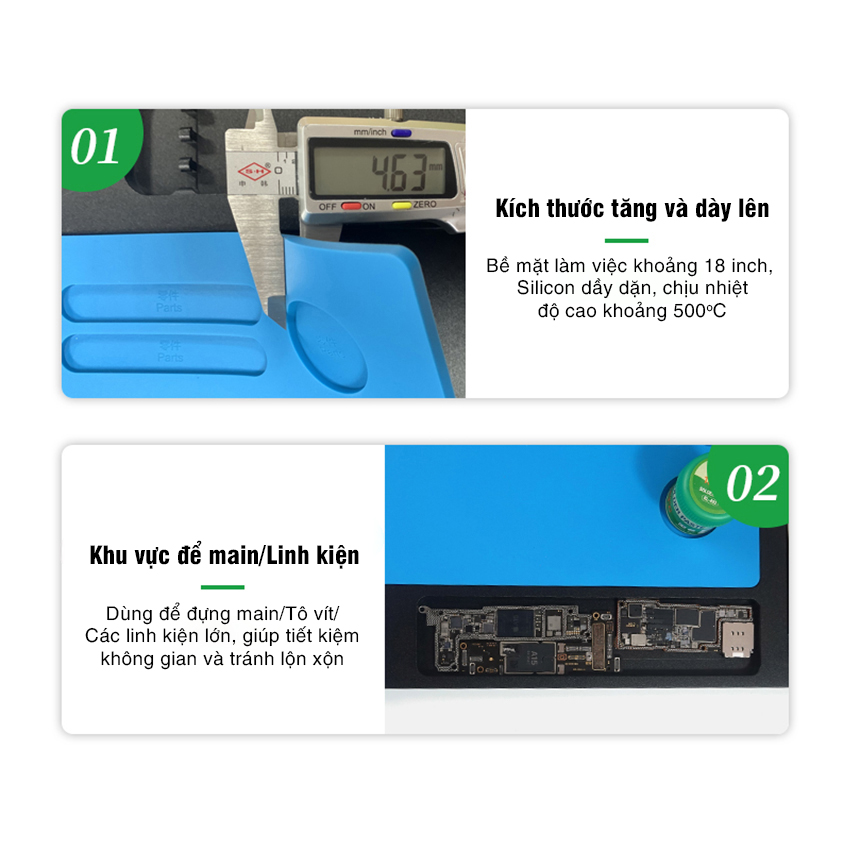 Thảm lót RELIFE RL-004NA đa năng – thảm silicone chịu nhiệt chống trơn trượt, bảo vệ bề mặt bàn khi làm việc với kính hiển vi, máy hàn, linh kiện điện tử. Chịu nhiệt tốt, dễ lau chùi, bền bỉ.