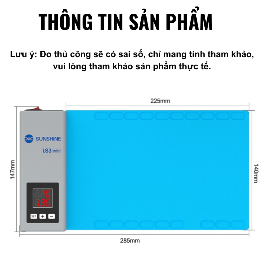 Với thiết kế thông minh, khả năng gia nhiệt ổn định và tính di động cao, thảm nhiệt kỹ thuật Sunshine LS3 mini thực sự là một trợ thủ đắc lực, giúp nâng cao hiệu suất làm việc và chất lượng dịch vụ sửa chữa ép kính. Đây là sự đầu tư xứng đáng cho cả thợ sửa chữa cá nhân lẫn các trung tâm bảo hành chuyên nghiệp.