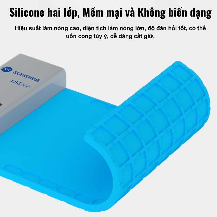 Khác với các loại bàn nhiệt cứng nhắc truyền thống, Sunshine LS-3 Mini được chế tạo từ chất liệu silicon hai lớp.