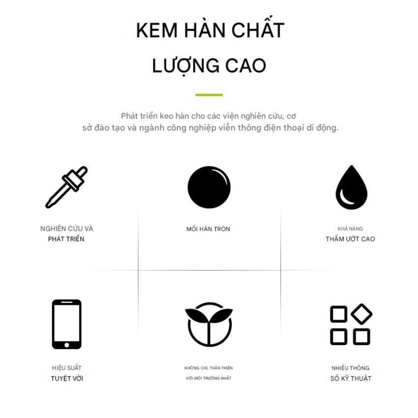 Kem hàn có khả năng lan đều trên pad, giúp mối hàn mịn, chắc, không rỗ khí, hạn chế hàn giả và bong pad.