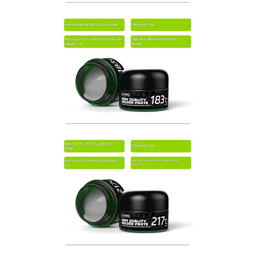 Thiếc Hàn Luowei LW-SP1 – Kem Hàn PCB Cao Cấp 138°C / 158°C / 183°C / 217°C