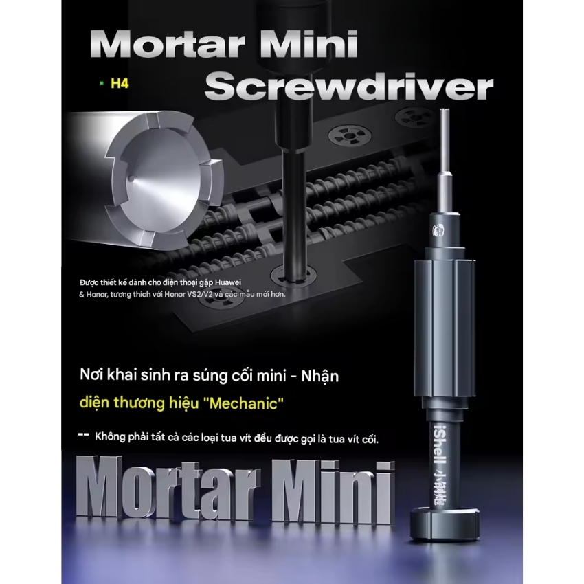 Trong giới kỹ thuật sửa chữa điện thoại, đặc biệt là các dòng smartphone cao cấp màn hình gập (Folding Screen), việc sở hữu một công cụ mở chính xác và bền bỉ là yếu tố tiên quyết. Dựa trên công nghệ vật liệu tiên tiến và thiết kế tối ưu, sự xuất hiện của Tô vít Mechanic iShell H4 (còn được gọi là Mortar Mini) đang tạo nên một tiêu chuẩn mới cho các bộ dụng cụ tháo lắp chuyên nghiệp.