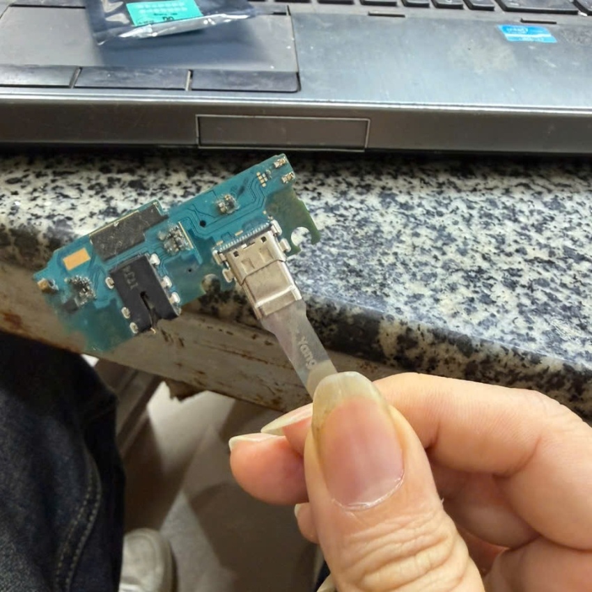 Thao tác chuyên nghiệp: Tool nhấc chân sạc Type-C Mr Yang giúp kỹ thuật viên dễ dàng nhấc hoặc đóng chân sạc vào mainboard một cách chính xác và an toàn.