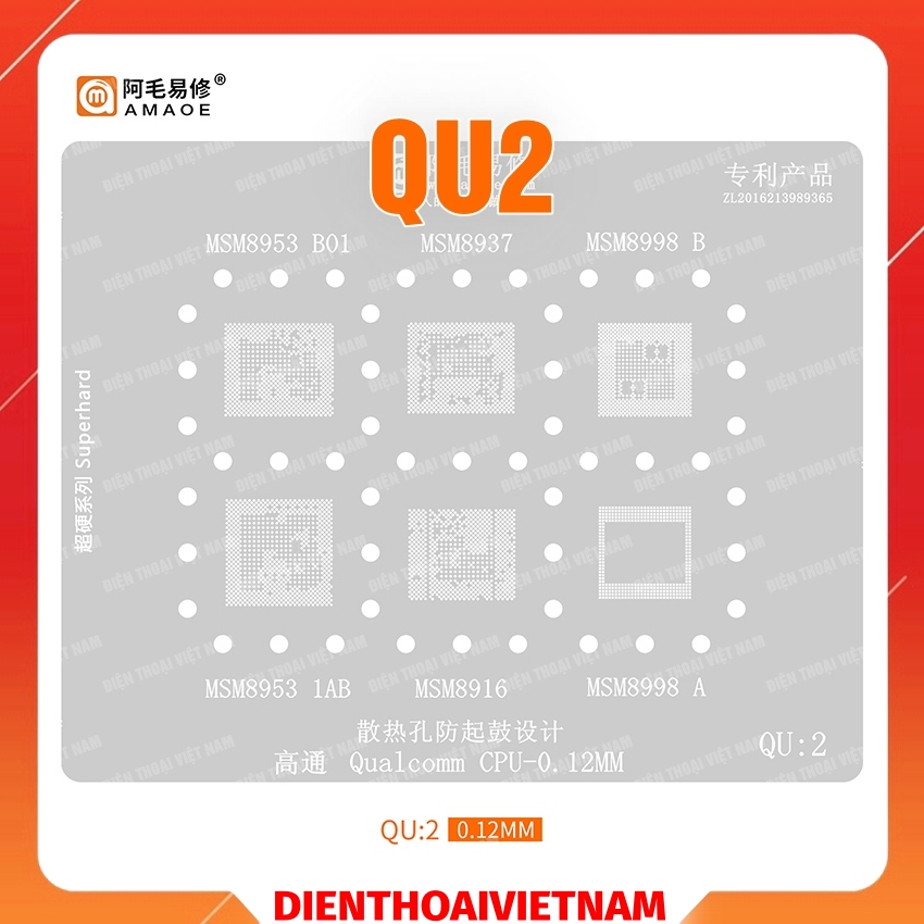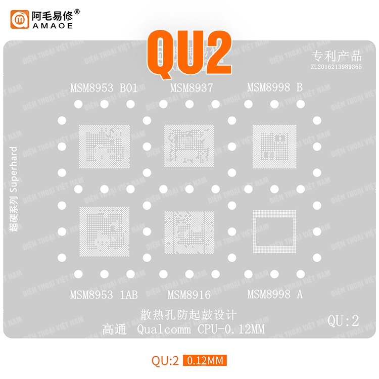 Vỉ làm chân IC Amaoe QU2 là vỉ reball chuyên dụng cho các dòng CPU Qualcomm thường gặp trên điện thoại Android.